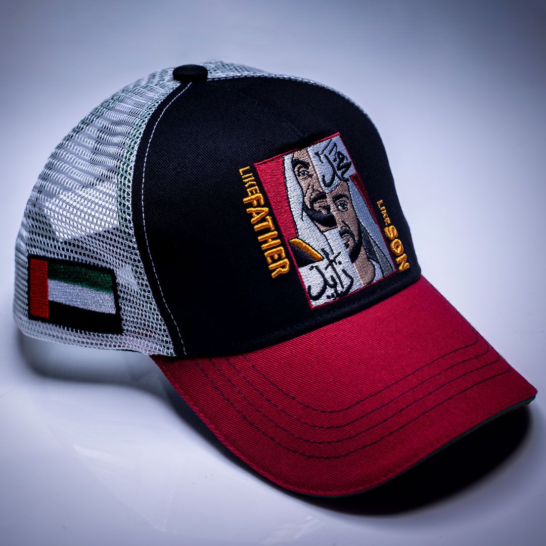 Unique caps with a detailed embroidery design of HH Sh. Zayed - May Allah Bless His Soul- And HH sh. Mohammed Bin Zayed.